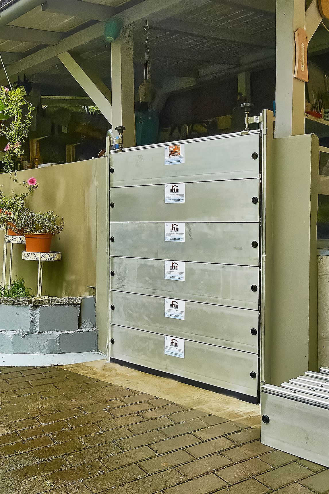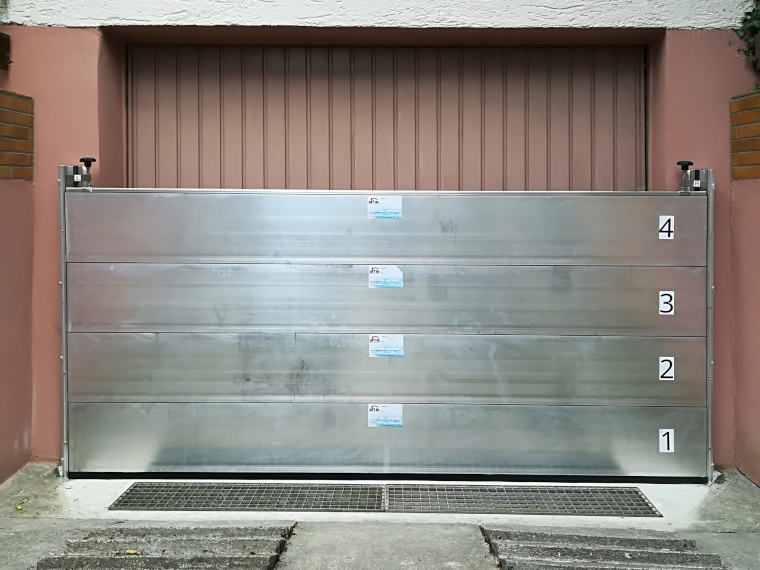 Durch das Einsetzen von mehreren Profilen kann die Schutzhöhe beliebig erhöht werden. Je nach Anwendungsbereich werden Dammbalken mit 50 mm oder 100 mm Stärke/Bautiefe verwendet. Aufgrund der einfachen Handhabung ist dieses System ein schnell und vielseitig einsetzbarer Hochwasserschutz. Das System kann auf die Leibung / Fassade oder in die Leibung montiert werden.